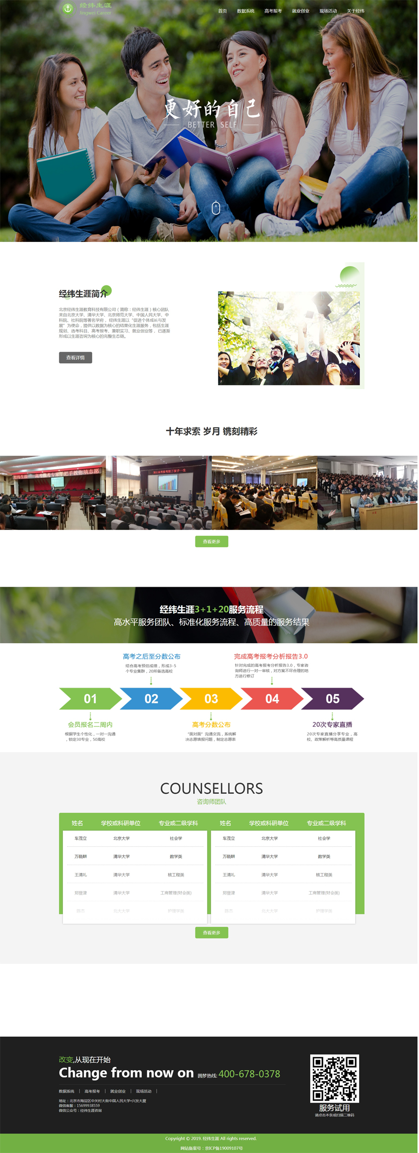 Project Description 北京经纬生涯教育科技有限公司(简称:经纬生涯)核心团队来自北京大学、清华大学、北京师范大学、中国人民大学、中科院、社科院等著名学府, 经纬生涯以“促进个体成长与发展”为使命,提供以数据为核心的结果化生涯服务,包括生涯规划、选考科目、高考报考、兼职实习、就业创业等, 已逐渐形成以生涯咨询为核心的完整生态链。 Official website address 怒江http://www.jingweishengya.com/ I want to share